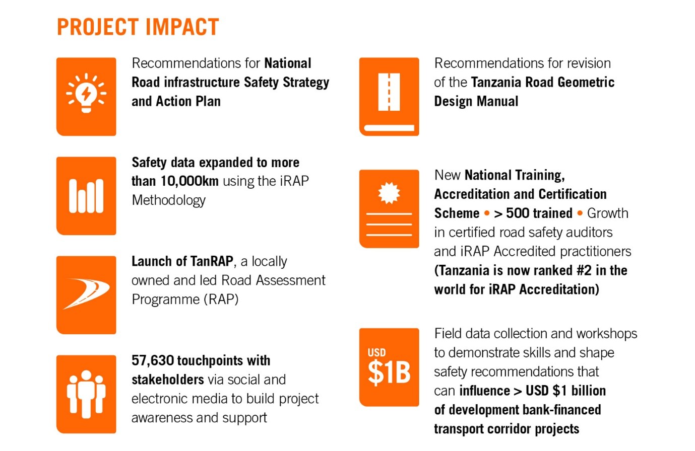 Tanzania was the first country in the world to implement the United Nations Road Safety Collaboration (UNRSC) Ten Step Plan Approach.
