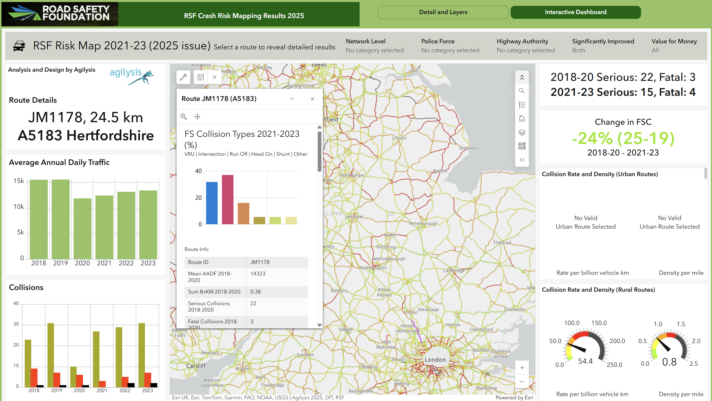 United Kingdom RAP Lead Road Safety Foundation (RSF) has today released its 2025 Crash Risk Mapping Results, mapping the statistical risk of a fatal or serious injury occurring on Great Britain’s motorways and ‘A’ roads for 2021-2023, and tracking the safety performance of the network.