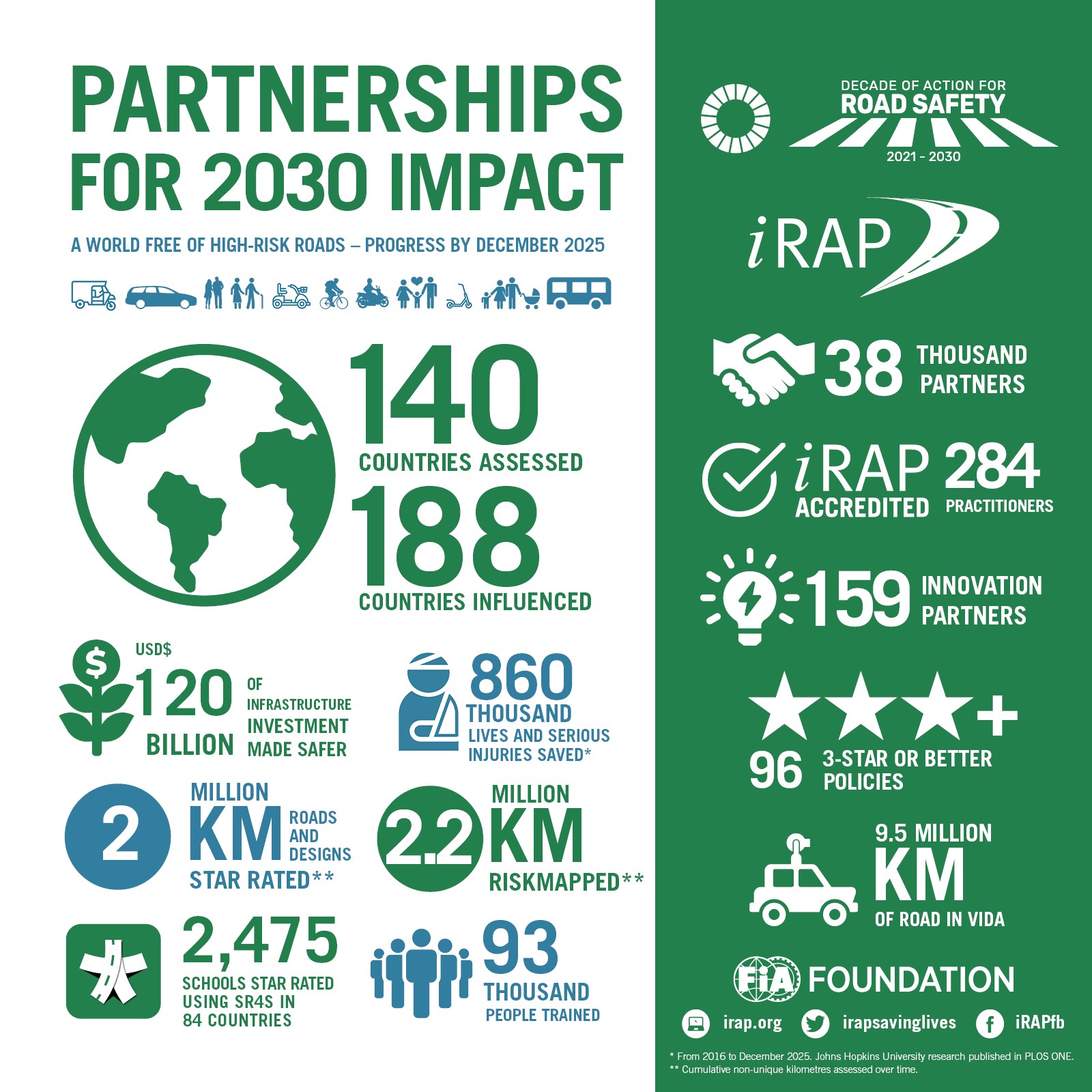 iRAP (the International Road Assessment Programme) is the umbrella programme for Road Assessment Programmes (RAPs) worldwide that are working to save lives. Like many life-saving charities working in the public health arena, we use a robust, evidence-based approach to prevent unnecessary deaths and suffering.