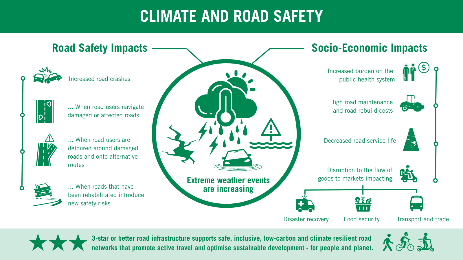 Increased temperatures and extreme weather events are leading to disasters such as flooding and faster deterioration, damage and increased maintenance costs for road infrastructure. Road safety can be impacted in three key ways:
