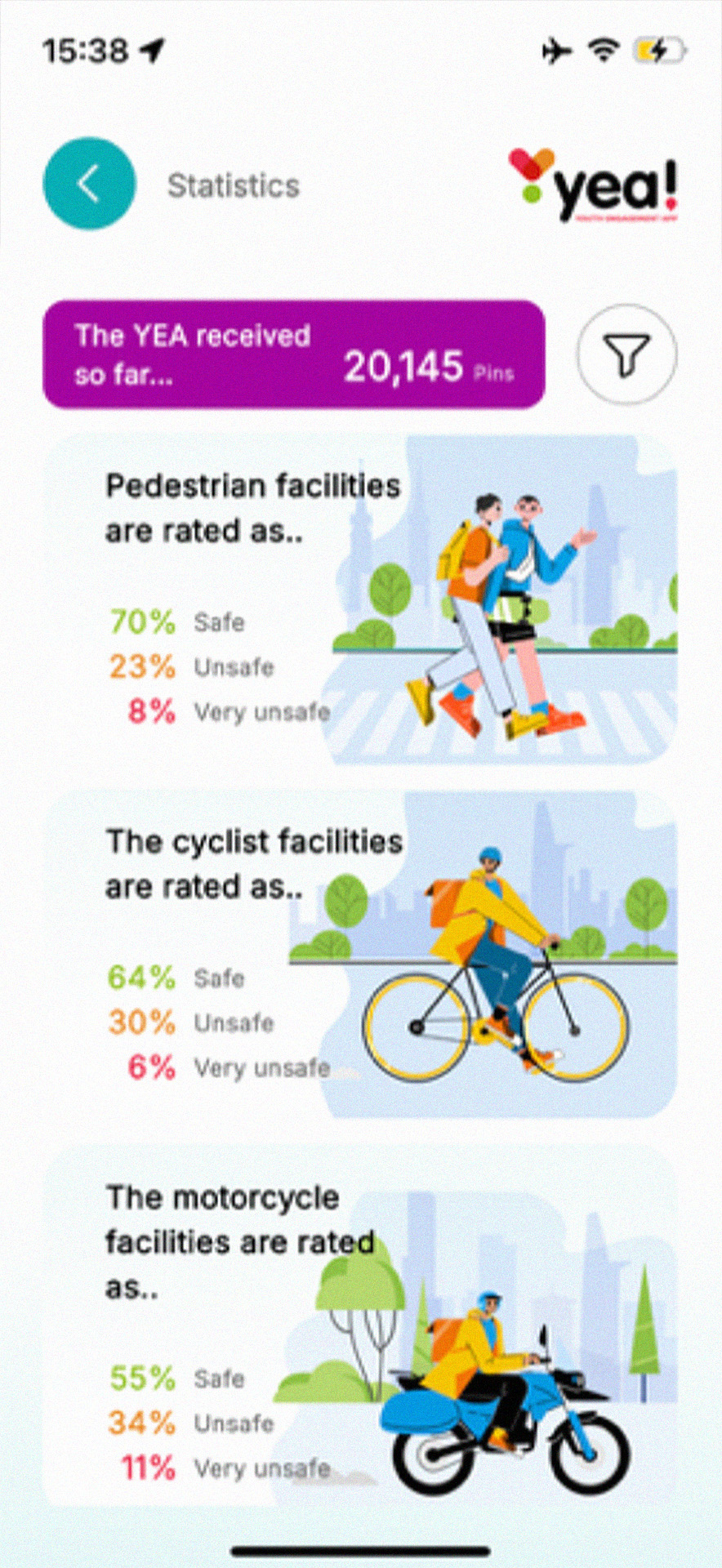 O YEA, com sua interface intuitiva, recursos visuais vibrantes e ferramentas avançadas de visualização de dados, está pronto para apoiar os líderes jovens do programa. O aplicativo agilizará o planejamento de projetos, a coleta de feedback da comunidade e a identificação de áreas de risco, permitindo intervenções de segurança eficazes.. Em maio, serão realizados workshops com jovens e autoridades rodoviárias nacionais vitrine Capacidades da YEA, promovendo colaboração para construir comunidades mais seguras e sustentáveis.