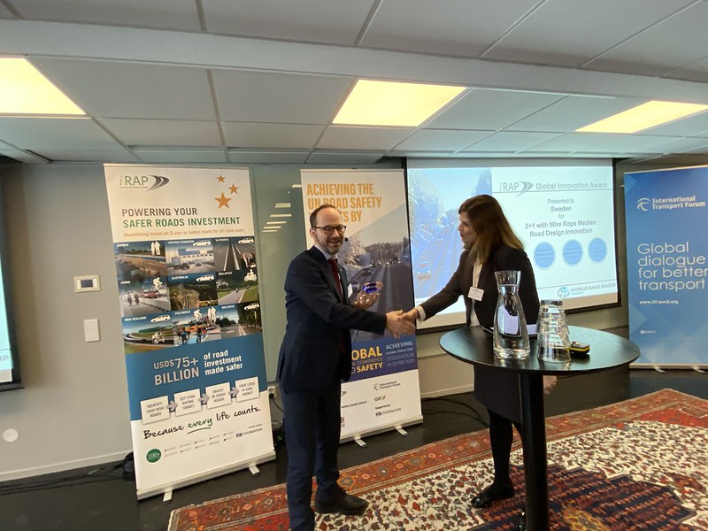 The award is an initiative of the International Road Assessment Programme (iRAP), a global charity operating in more than 100 countries, and was presented to Sweden’s Minister for Infrastructure Tomas Eneroth during the 2020 Innovation Workshop, an official side event of the 3rd Global Ministerial Conference for Road Safety.