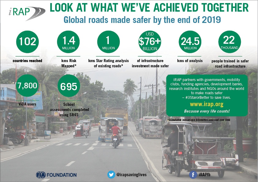 iRAP (the International Road Assessment Programme) is the umbrella programme for Road Assessment Programmes (RAPs) worldwide that are working to save lives. Like many life-saving charities working in the public health arena, we use a robust, evidence-based approach to prevent unnecessary deaths and suffering.